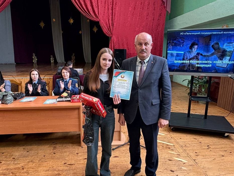 Директор колледжа Сергей Малюк вручил отдельный приз зрительских симпатий группе 1-4 и подчеркнул: полученными знаниями важно делиться с близкими — только так можно создать по-настоящему безопасную цифровую среду вокруг.
