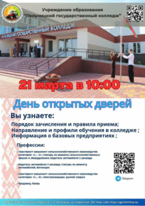 21 марта в УО «Лельчицкий государственный колледж» состоится день открытых дверей.