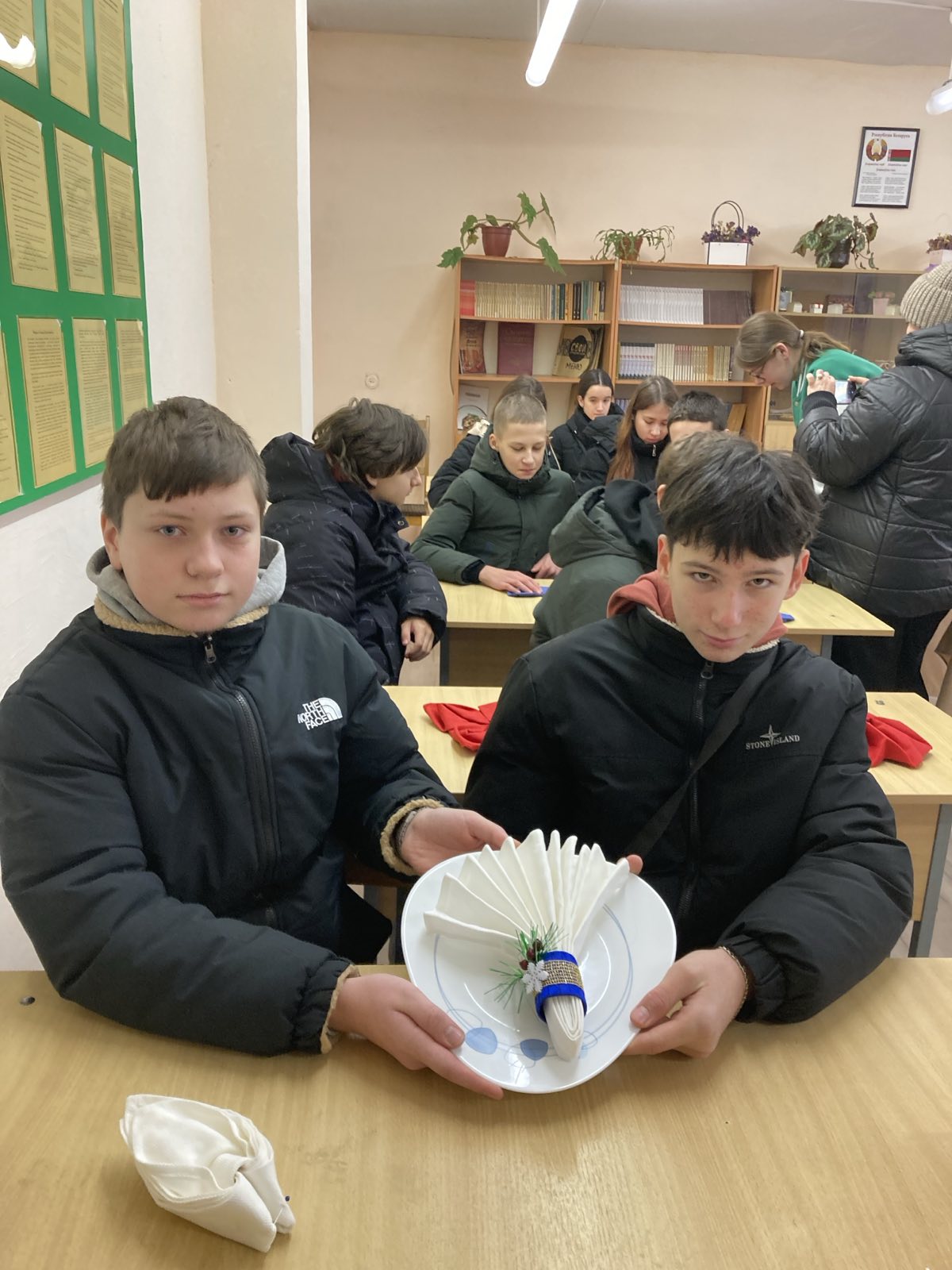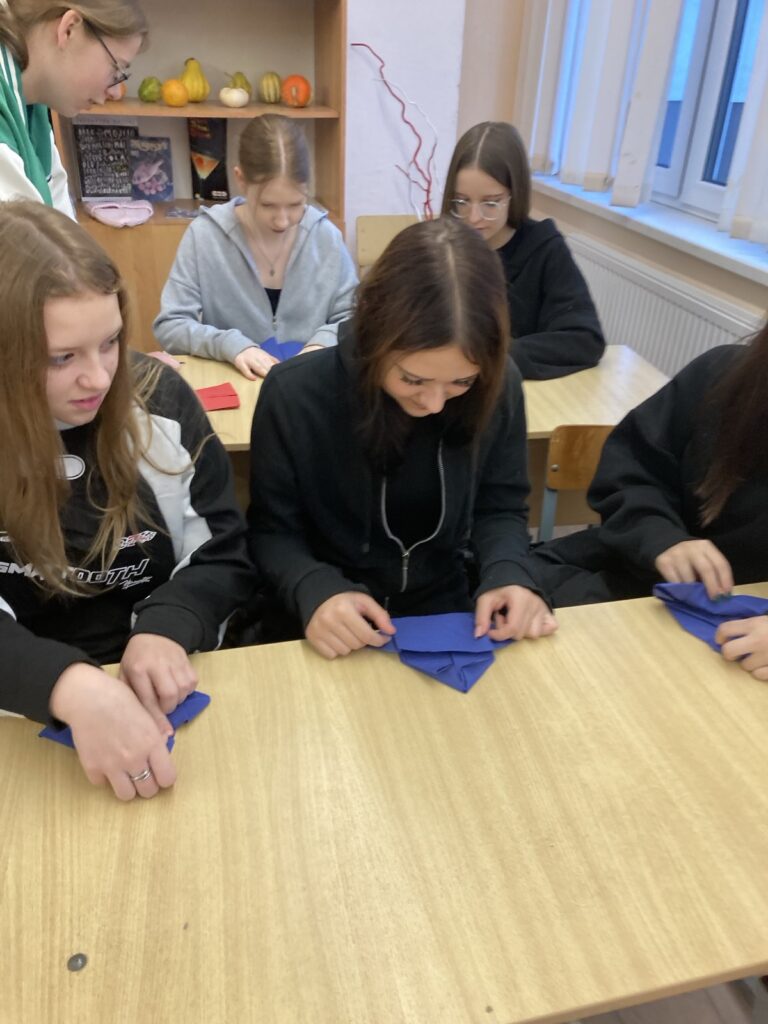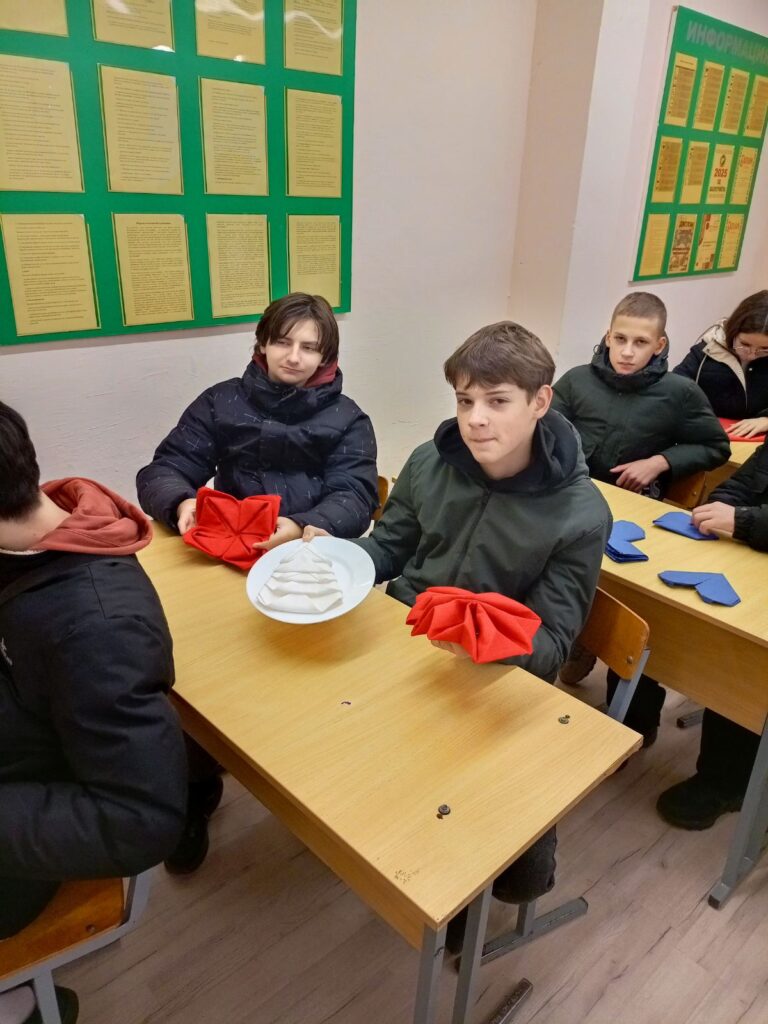 В учреждении образования «Лельчицкий государственный колледж» 29.11.2025г. в рамках проведения профессиональных суббот состоялся мастер-класс по специальности «Общественное питание», на котором под руководством мастера производственного обучения Гавриленко В.Г. учащиеся 9 классов средних школ №1,№2 и гимназии г. п. Лельчицы попробовали свои силы в оформлении столовых принадлежностей при подаче блюд по теме «Салфеточный этикет».