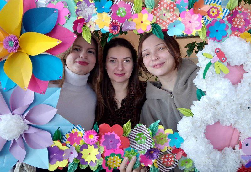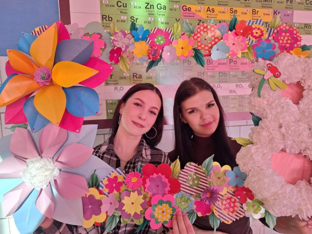 В нашем колледже расцвели улыбки! В преддверии праздника весны и цветов учащиеся группы 1-2 под руководством куратора Хомутовской С.В. подготовили творческий сюрприз для прекрасной половины колледжа. Ребята организовали творческую акцию «Цветочное селфи». Своими руками они вырезали, клеили и мастерили декоративные цветы, чтобы создать для девушек и женщин колледжа особенный подарок —красивую фоторамку. Цель была простая и замечательная: подарить праздник, который останется не только в памяти, но и в фотографиях. И результат превзошел все ожидания! Яркая рамка, утопающая в бумажных тюльпанах, ромашках и розах, мгновенно стала настоящим центром притяжения. С праздником, наши прекрасные девушки и женщины! Пусть весна цветет в ваших сердцах круглый год.